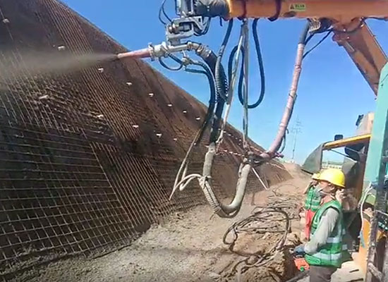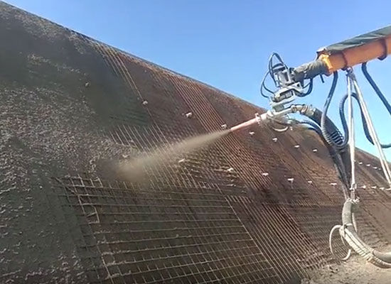 混凝土濕噴機械手是大型智能化混凝土濕噴設備,理論噴射排量每小時30立方。混凝土濕噴機械手采用全自動無線遙控操作,智能控制添加液壓速凝劑,能靈活方便的完成各種作業(yè)面的混凝土噴射作業(yè)。混凝土濕噴機械手廣泛應用于鐵路隧道、公路隧道、水利涵洞、礦山巷道、堤壩邊坡、建筑基坑和軍事工程等領域施工中的噴射混凝土支護作業(yè)。