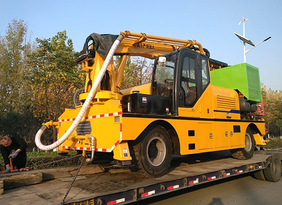 工程混凝土濕噴臺(tái)車是大型混凝土濕噴機(jī)械手,是一種將預(yù)拌好的混凝土高速噴射到受噴面,經(jīng)快速凝結(jié)形成混凝土支護(hù)層的專用設(shè)備。工程混凝土濕噴臺(tái)車廣泛適用于鐵路、公路隧道、邊坡、水利、水電的隧洞和涵洞、地鐵以及各種建筑工程等濕噴混凝土作業(yè)。